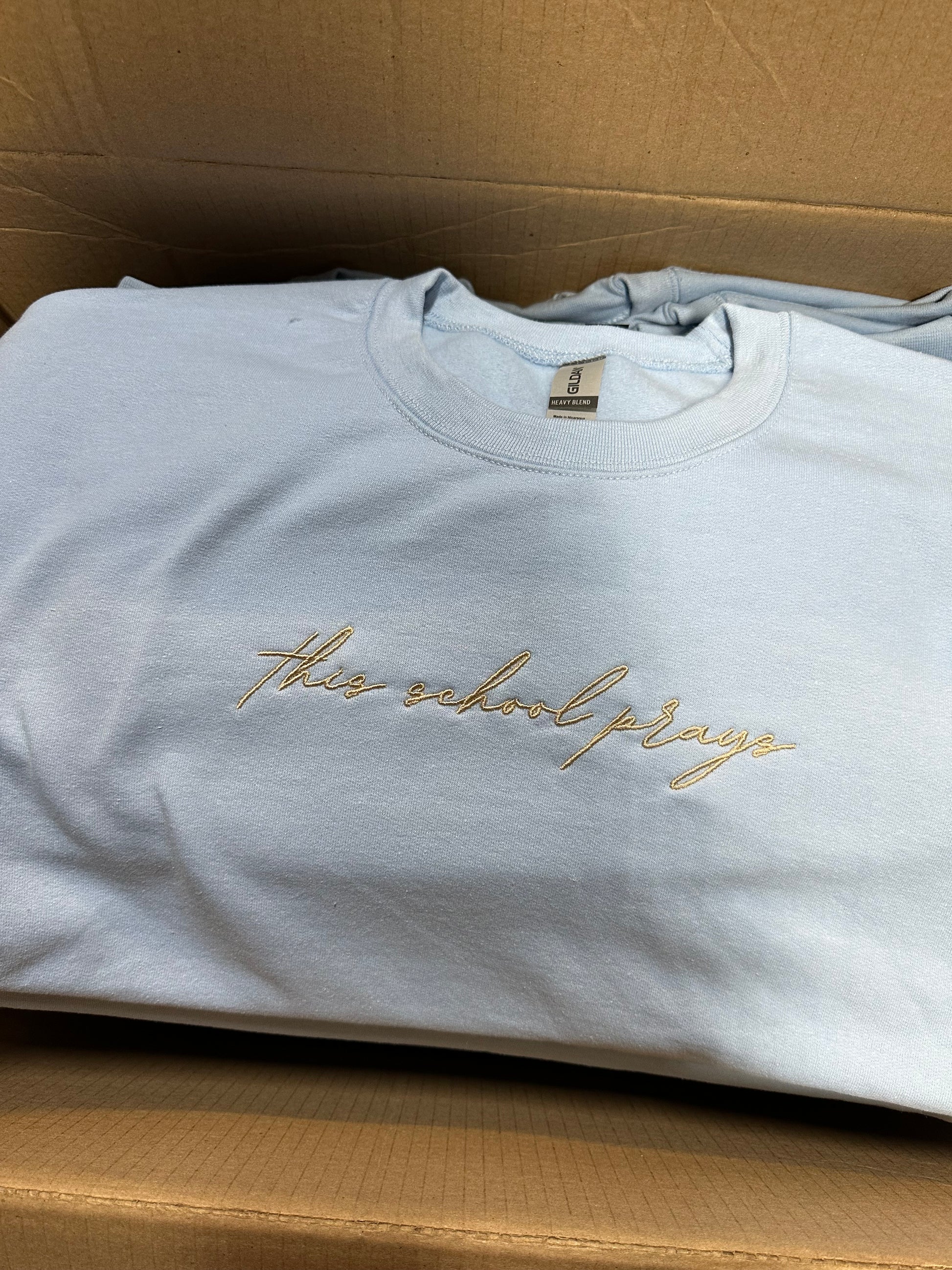 ADULT "THIS SCHOOL PRAYS" EMBROIDERED CREWNECK SWEATER