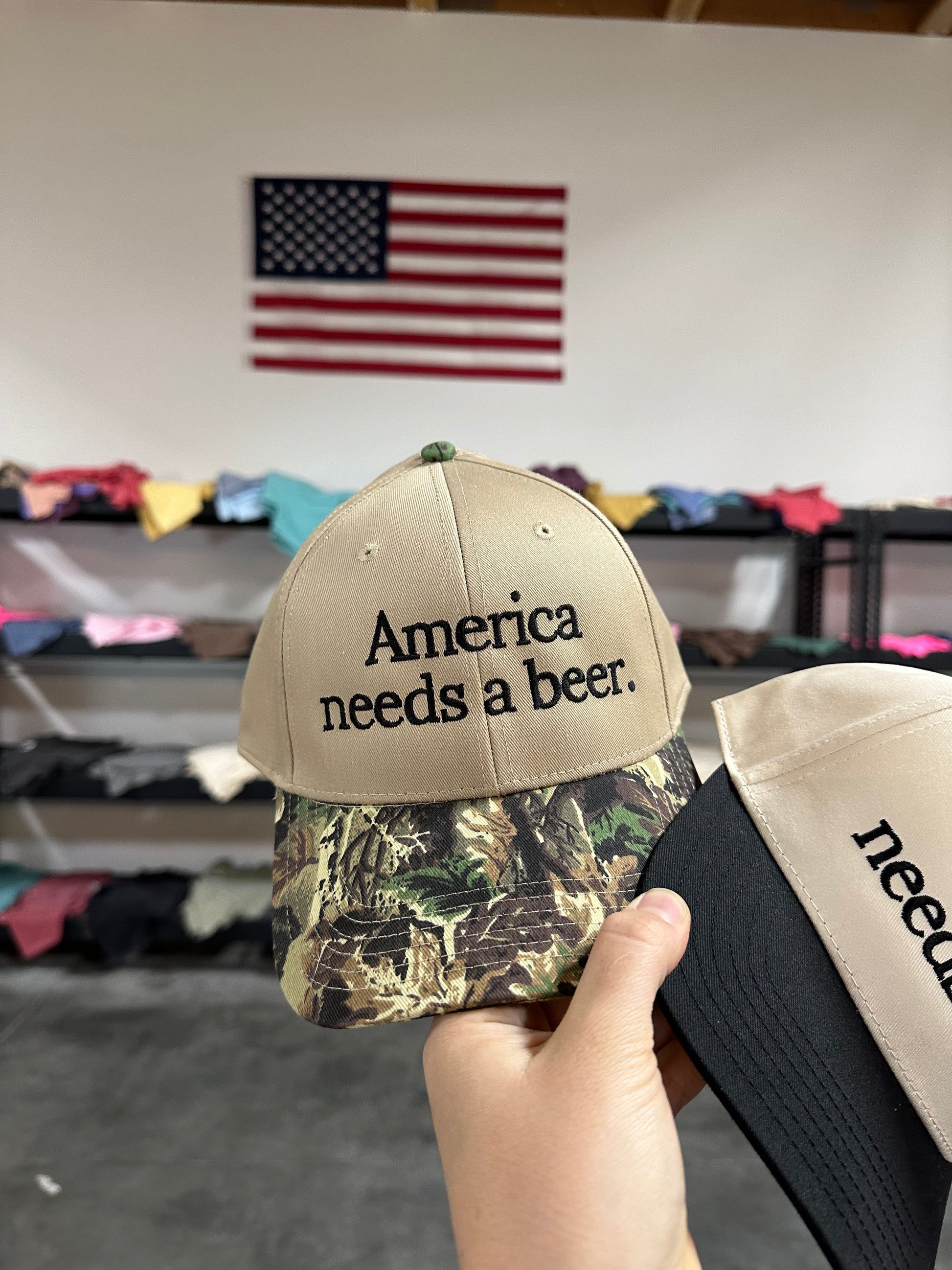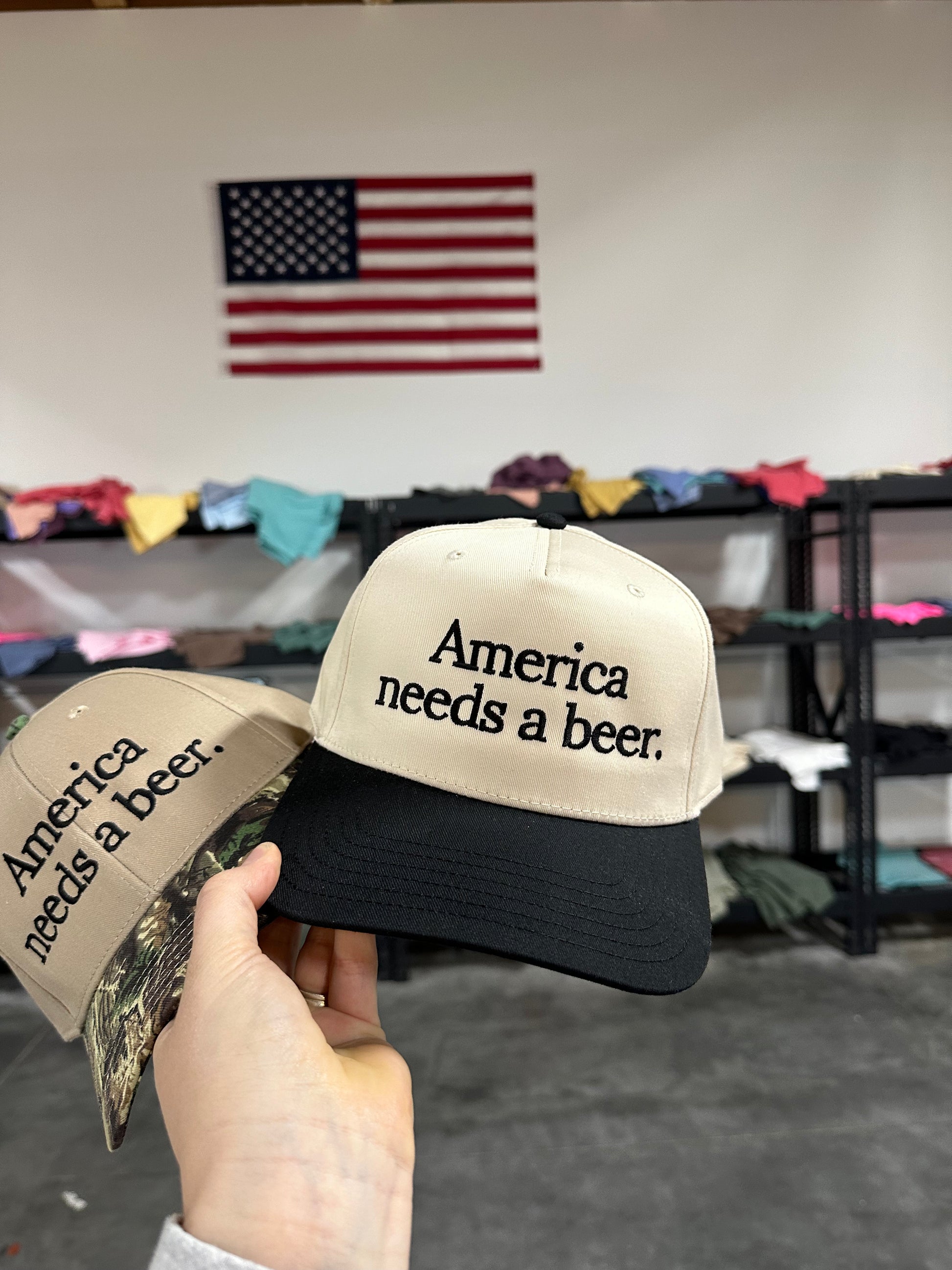 AMERICA NEEDS A BEER EMBROIDERED ADULT HAT