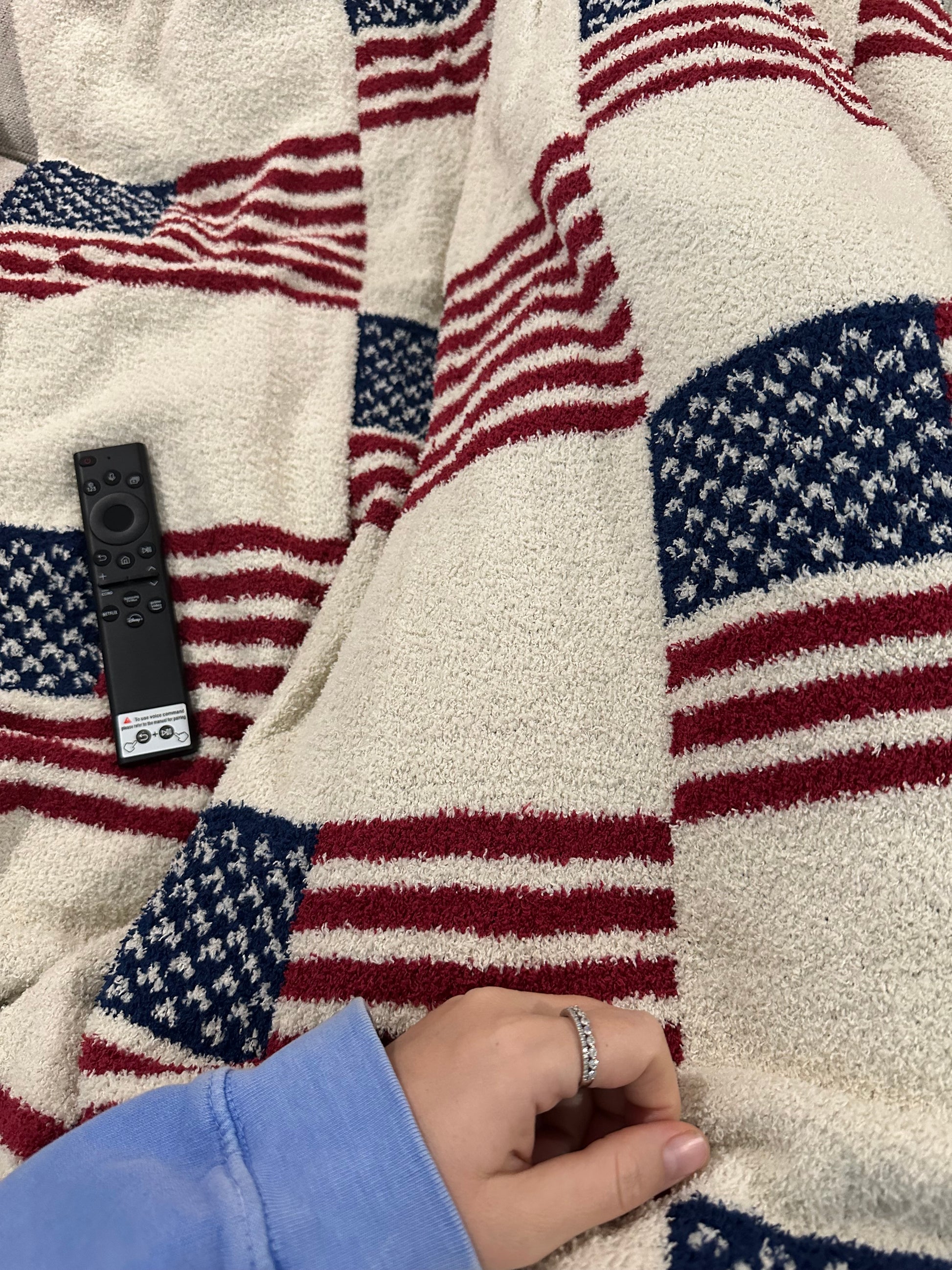 AMERICAN FLAG COZY BLANKET - WHITE BACKGROUND