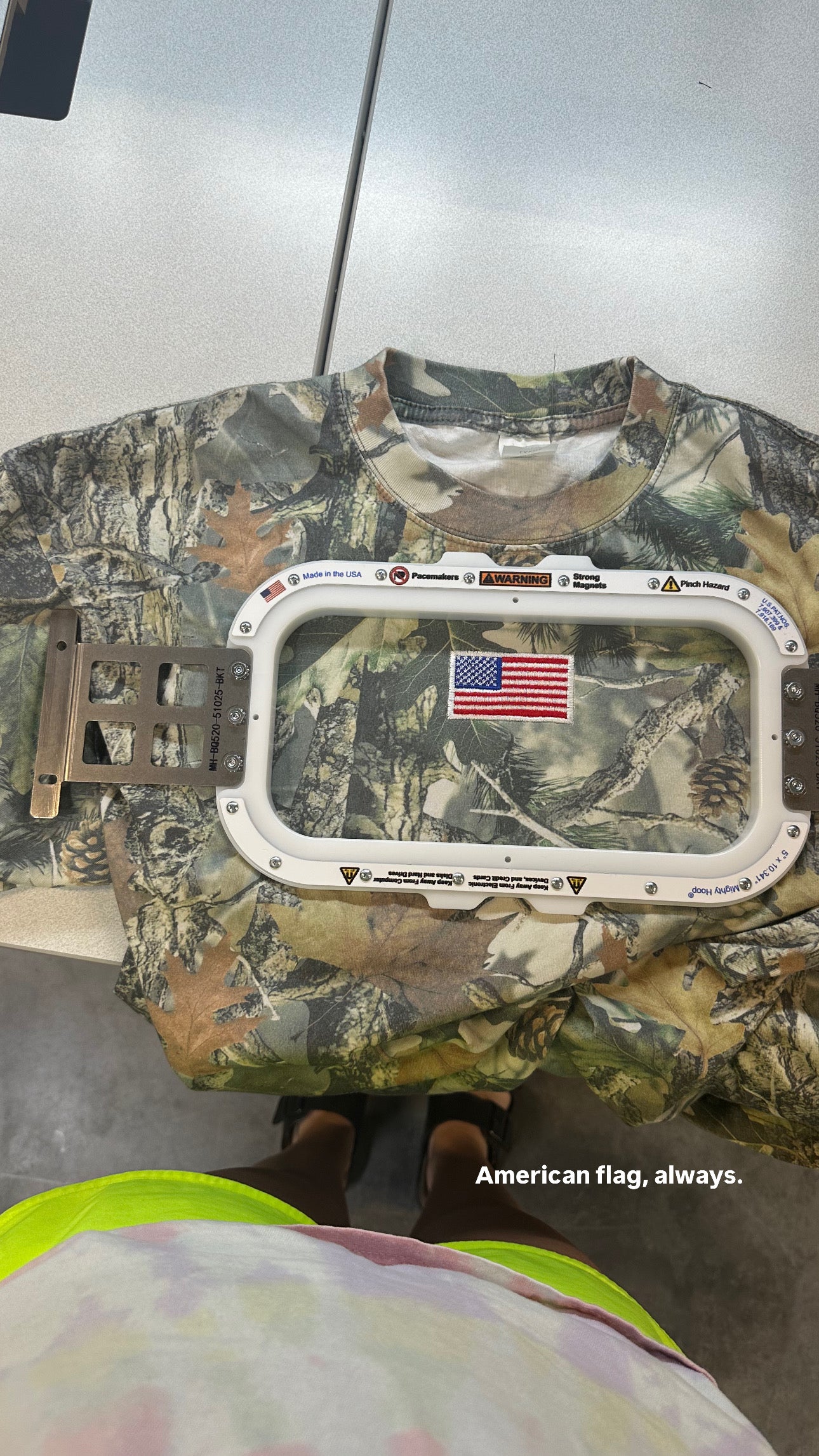CAMO OVERSIZED AMERICAN FLAG EMBROIDERED TEE