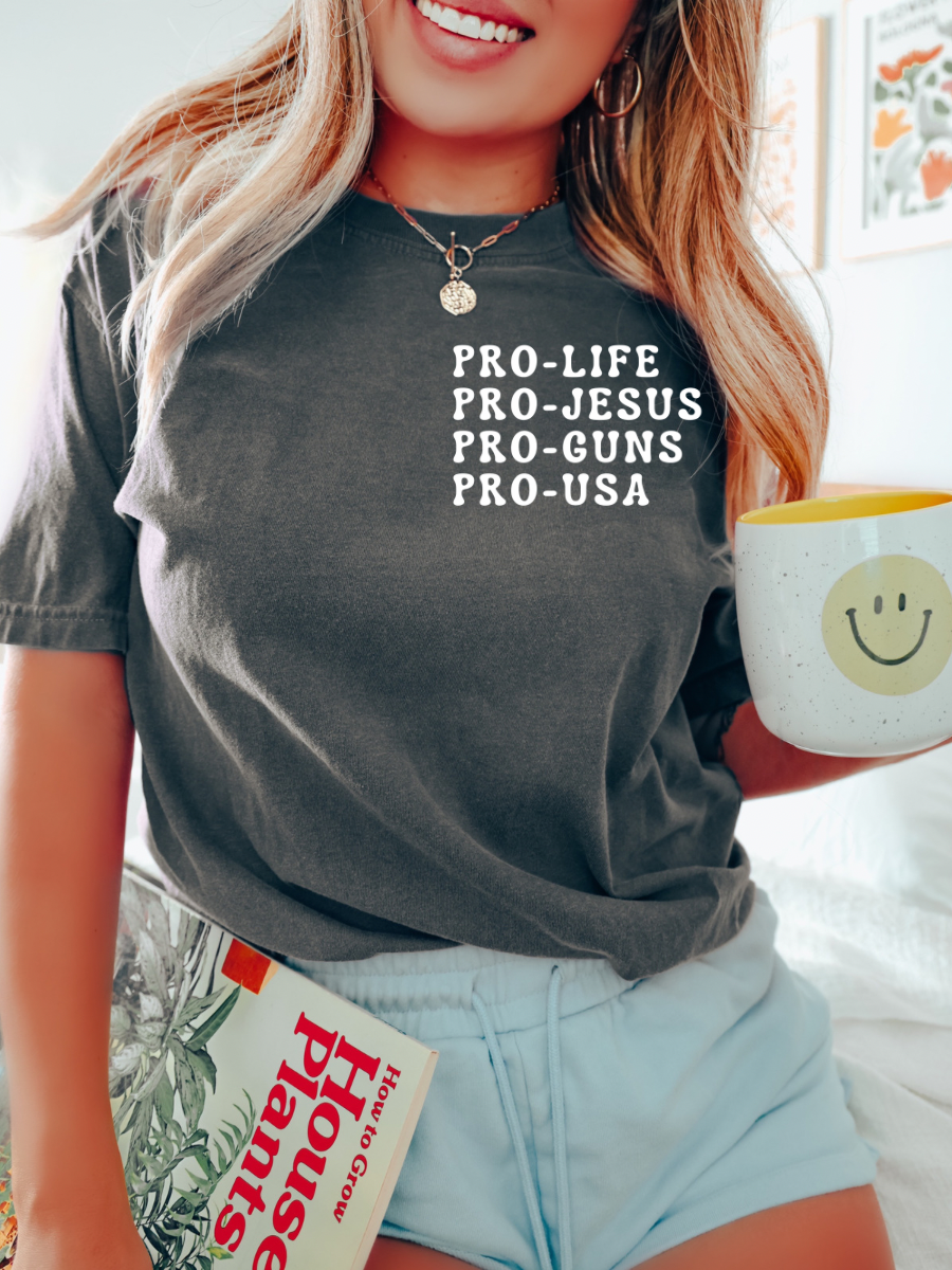 PRO-LIFE • PRO-JESUS • PRO-GUNS • PRO-USA *POCKET PRINT* - ADULT TEE
