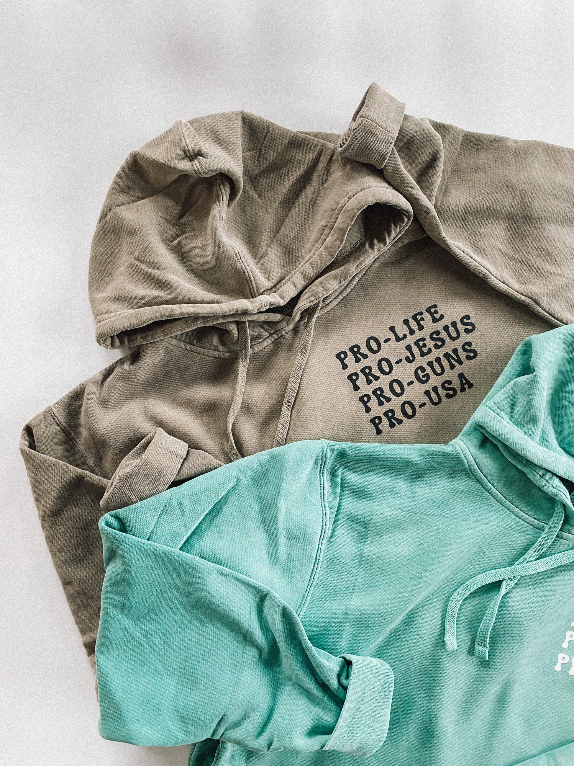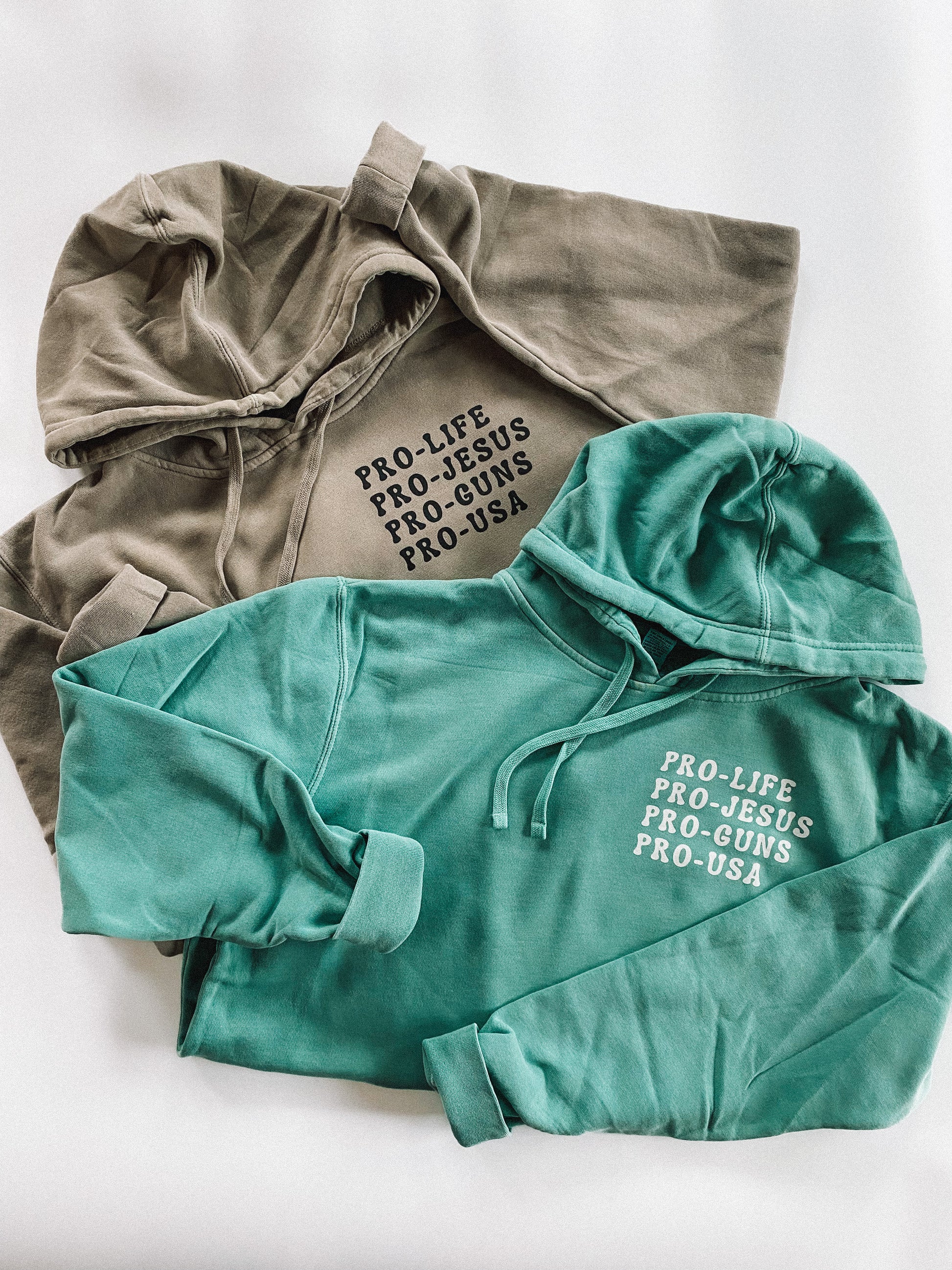 PRO-LIFE, PRO-JESUS, PRO-GUNS, PRO-USA - ADULT WASHED HOODIE