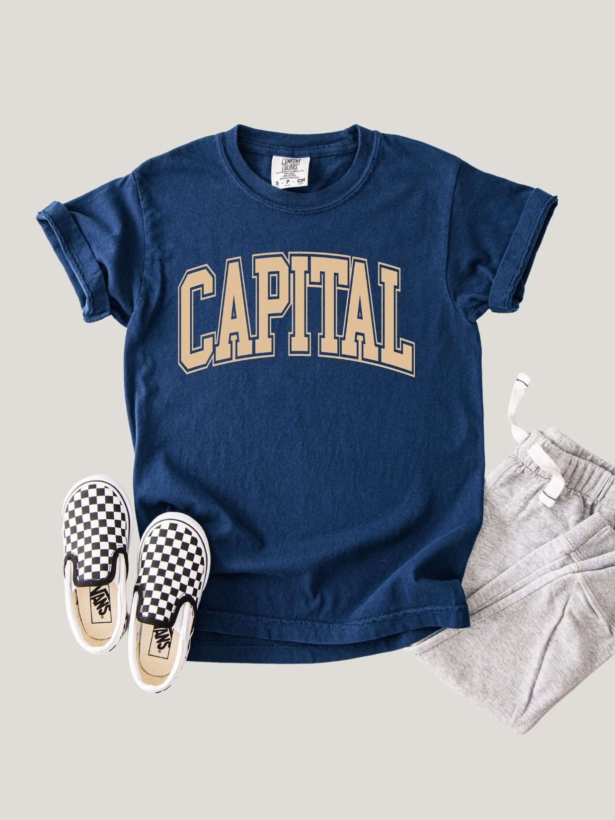 youth sizes (YS - YXL) will be printed on : comfort colors cotton tees for light blue and navy, and bella canvas cotton for natural.